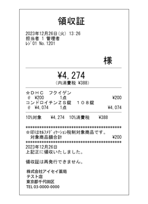 レシートの印字例